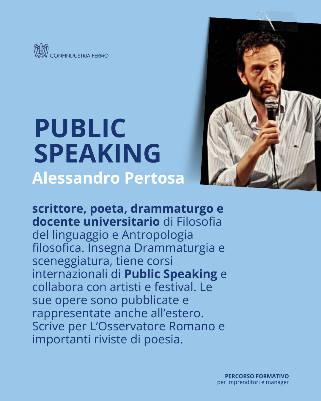 2. Corso: Public Speaking – Comunicare l’azienda in pubblico | Alessandro Pertosa – Filosofo, scrittore e docente